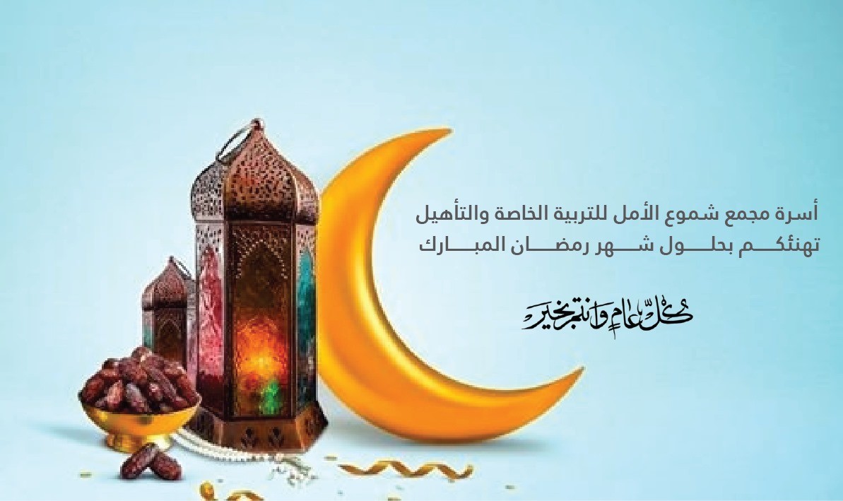 The family of Shamعش Al Amal Complex for Special Education and Rehabilitation congratulates you on the advent of the holy month of Ramadan. May you be well every year.